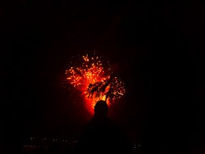 In hindsight we should have picked the main museum first because as soon as we were done with the hockeyness the place was jam packed full of wet cranky people. Wandering to find somewhere without a lineup longer than one for the ladies room at a Justin beiber concert, we found a place on the ground to sit, stairs to a finely crafted dome which gave the adults vertigo and the kids an urge to press up against the glass. After being told we can’t go backwards through the museum, some phone calls home and another plea for less whining, we decided to stick it out for the last hurrah. With a tarp packed in my man purse we staked out our spot to view the fireworks. Not a bad spot, but we had lots of space. The fireworks were quite good, definitely top 3 that I’ve seen, which includes Bastille day in France, and Disney world in front of Epcot.